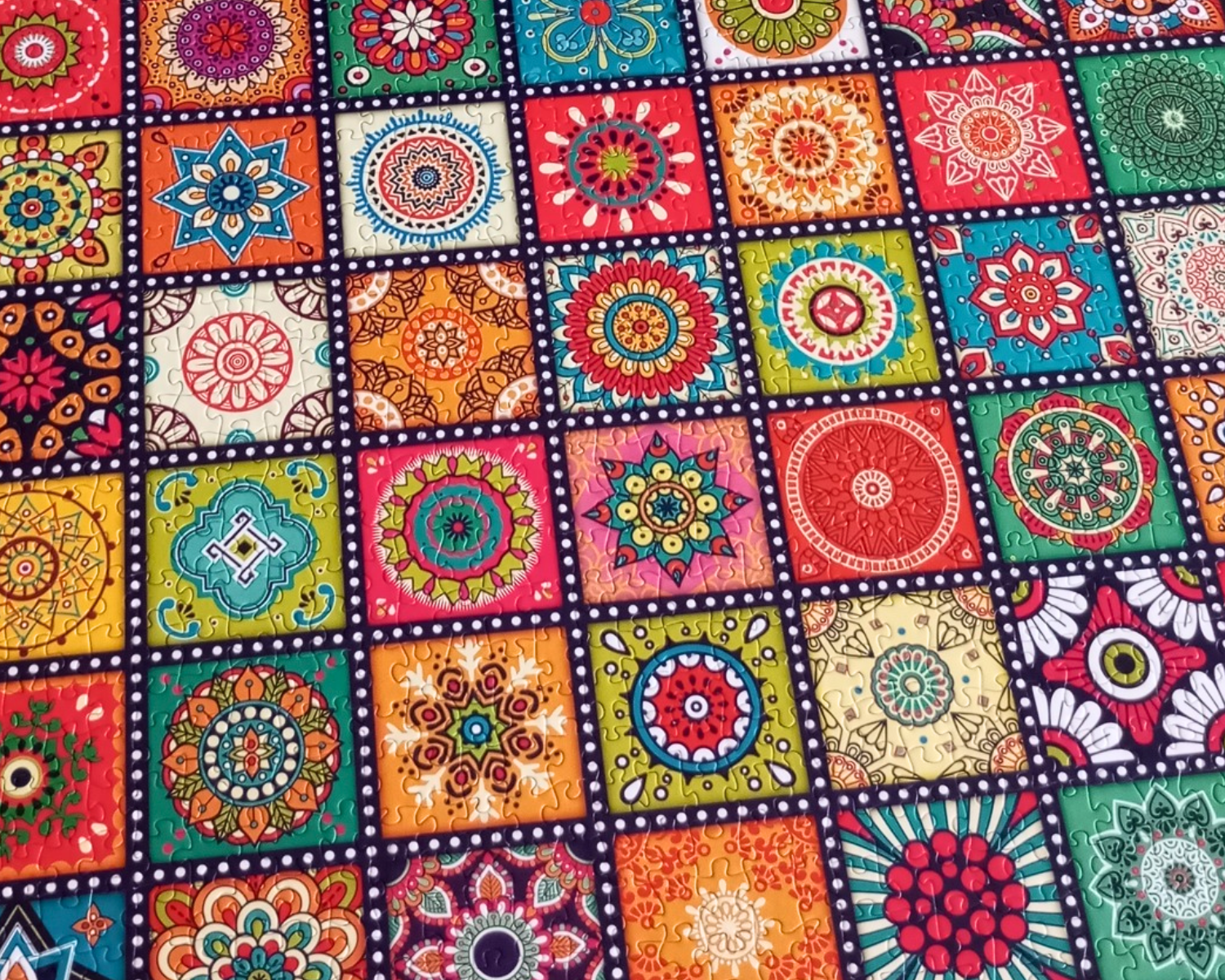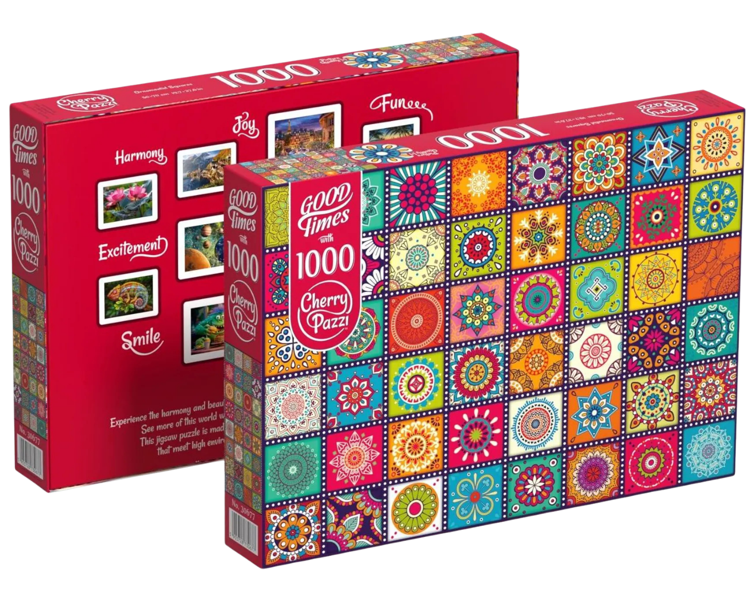 CherryPazzi Ornamental Squares — это пазл для взрослых на 1000 деталей, выполненный в стиле геометрического орнамента с ярко выраженными мотивами марокканского декоративного искусства.